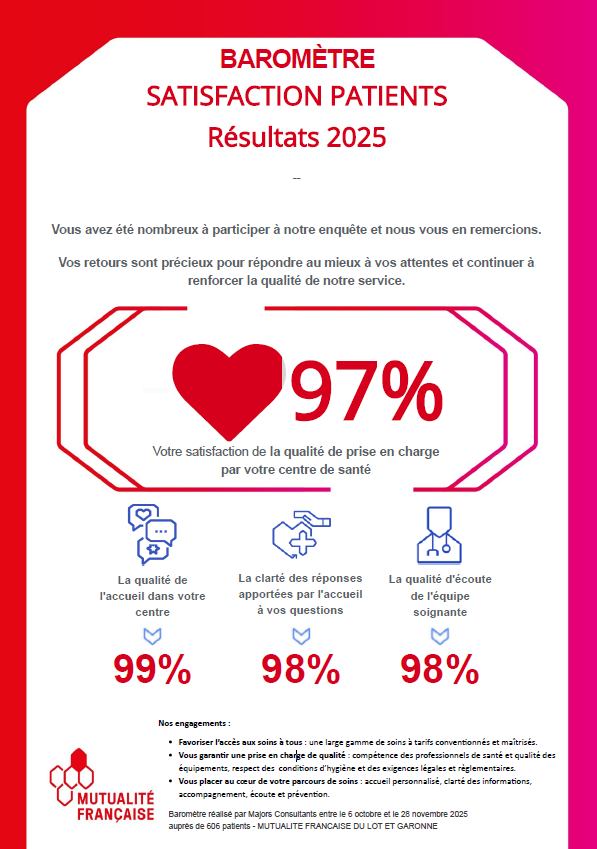 - Membre du 1er réseau national des centres de santé crée au début des années 1980 à la Fédération Nationale de la Mutualité Française située à Paris (FNMF) et gérés par la Mutualité Française de Lot-et-Garonne dont le siège administratif est à Agen.